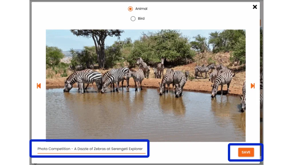 After taking your photo, give it a clear description using the following format: Photo Competition – photo title. When you’re done, select “Save.” This ensures we can quickly identify your competition entries and their titles.