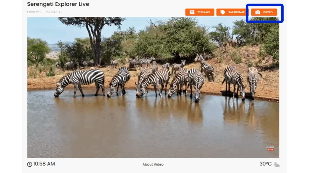 Once subscribed, tune into Africam’s live streams and photograph captivating wildlife scenes, sweeping landscapes, and standout moments that fit the monthly theme. Use the “Photo” button to snap your chosen shot directly from the livestream.
